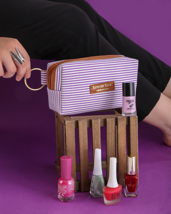 کیف آرایشی ۴ گوش راه راه
